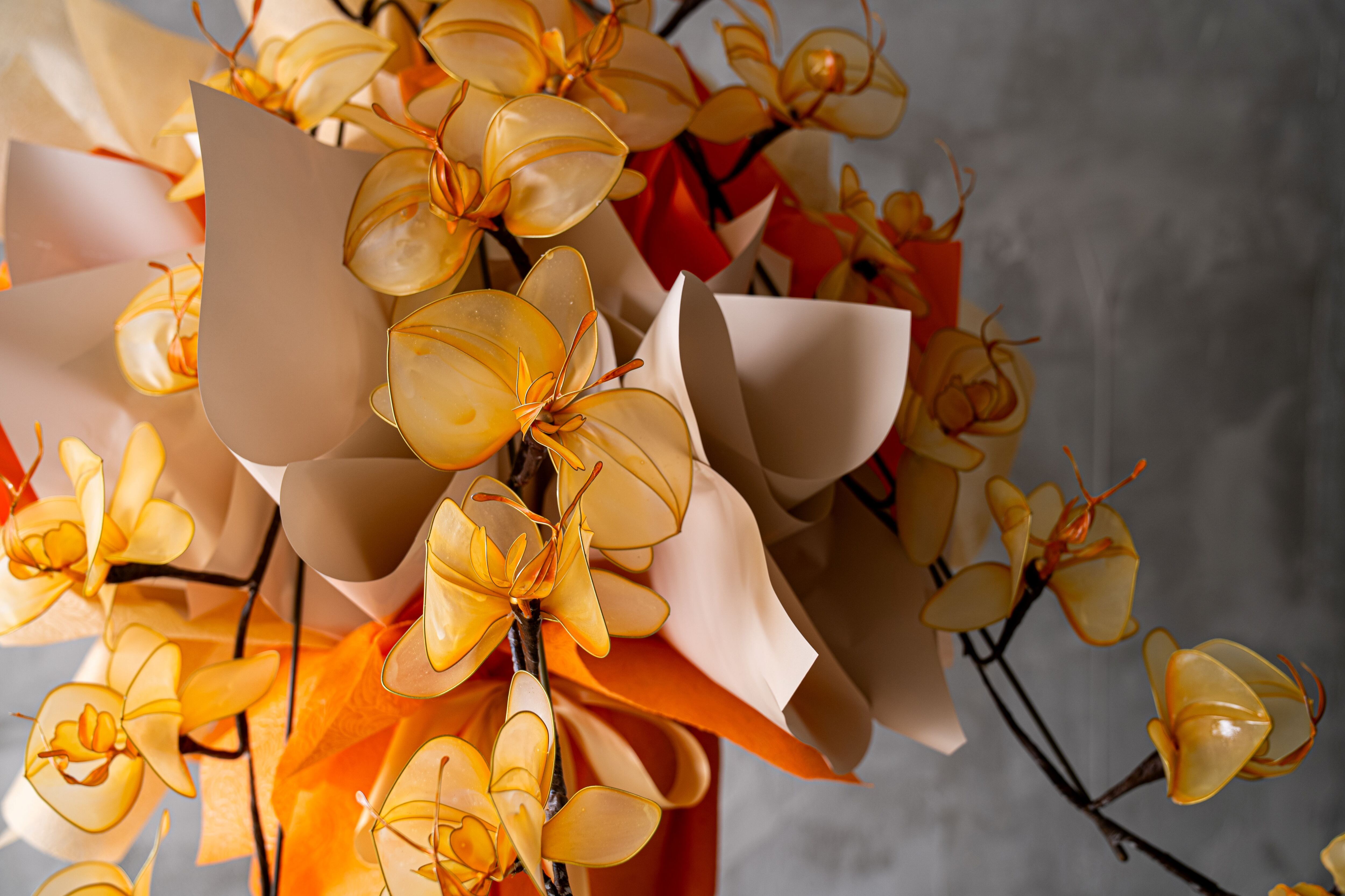 こちらの商品はワイヤー(針金)でできた胡蝶蘭です。レンタルサービスになりますので、返却時は郵送先の会社様で返送手続きだけ必要になります。